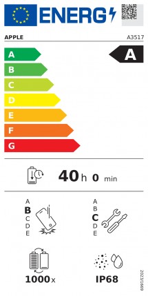على صعيد كفاءة الطاقة، حقق iPhone 17 Pro Max تصنيفًا من الفئة أ، مع عمر بطارية يصل إلى 53 ساعة، وهو أعلى من Galaxy S25 Ultra الذي يعمل لمدة 44 ساعة و54 دقيقة، و Pixel 10 Pro XL الذي يعمل لمدة 48 ساعة و39 دقيقة، وتجدر الإشارة إلى أن بطاريات Galaxy مصممة لتحمل حوالي 2000 دورة شحن، بينما بطاريات iPhone وPixel تتحمل حوالي 1000 دورة فقط، مما يؤثر على عمر البطارية مع الاستخدام المستمر.
