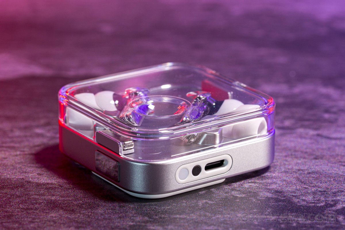 تتميز سماعات Nothing Ear (3) بتصميم أنيق وعصري، حيث تأتي في علبة ذات غطاء بلاستيكي عالي الجودة ملتصق بقاعدة من الألمنيوم، مما يمنحها مظهرًا فخمًا ومتينا، يختلف هذا التصميم عن الإصدارات السابقة التي كانت مصنوعة بالكامل من البلاستيك، حيث يضيف استخدام الألمنيوم لمسة من الفخامة والمتانة، ويعزز من إحساس المستخدم بجودة المنتج، وزن العلبة يزيد قليلاً عن 61 غرامًا، وهو وزن ملحوظ يعطي إحساسًا بالجودة والمتانة، بينما يبلغ الوزن الإجمالي مع السماعات حوالي 71.4 غرامًا، مما يجعلها سهلة الحمل والاستخدام اليومي.
