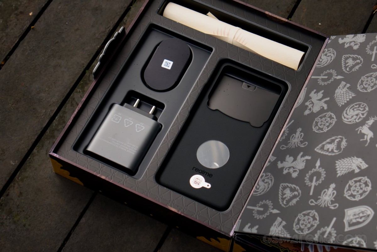 تحتوي الحزمة على الهاتف، وغطاء سيليكون مخصص، وملصقات، وبطاقة بريدية، ولفافة تحتوي على نص سري، وشاحن وكابل، بالإضافة إلى تمثال العرش الحديدي الصغير الذي يعمل كحامل للهاتف، كل هذه العناصر تعزز من تجربة المستخدم وتضفي طابعًا فريدًا على النسخة المحدودة.