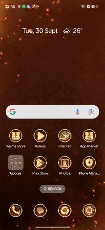 عند تشغيل الهاتف، يتم عرض نص افتتاحي مخصص من لعبة العروش، ويأتي الهاتف مع واجهة مستخدم مخصصة تحمل اسم “Dragonfire”، تتضمن خلفية ثابتة وشاشة قفل متحركة، وعرض دائم مخصص، وأيقونات فريدة، كما تتوفر فلاتر كاميرا خاصة باسم “King’s Landing” و”Winterfell”، تمنح الصور مظهرًا دافئًا أو باردًا على التوالي، أيقونة قفل بصمة الإصبع تظهر كشعار Targaryen.