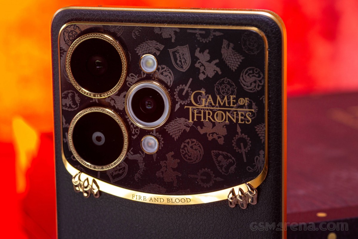 يحتفظ الهاتف بتصميم مشابه للنسخة العادية، لكنه يأتي بلون أسود وذهبي يُطلق عليه اسم Dragonfire Black، ويحتوي على لوحة خلفية من الجلد النباتي (Vegan Leather) مع شعار ثلاثي الأبعاد لعائلة Targaryen يمكن رؤيته من خلال نافذة صغيرة على الغطاء، الجزء العلوي من الهاتف مزين بمنطقة الكاميرات باللون الذهبي، وتحتوي على رموز بيوت مختلفة تتلألأ عند تعرضها للضوء، مع نقش لعبارة “Fire and Blood”، وأقدام التنين تدعم الهيكل من الأسفل.
