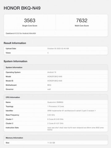 ظهور هاتف Honor Magic8 العالمي على منصة Geekbench